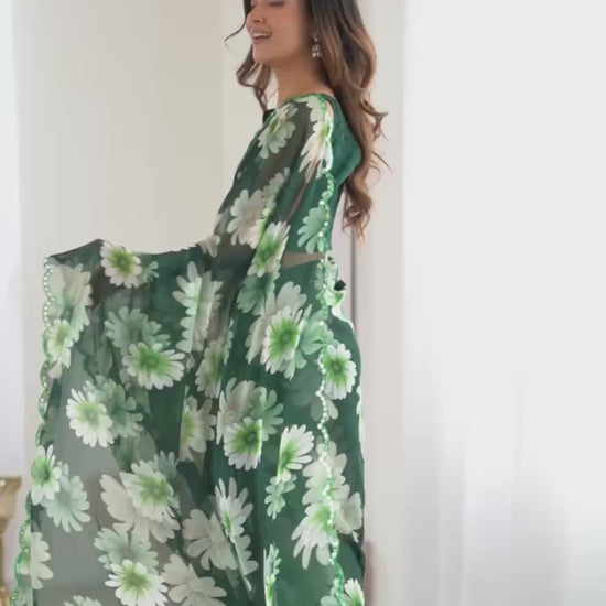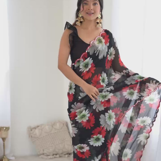 ✨ Premium Georgette Silk Printed Saree with Mirror Work Border ✨