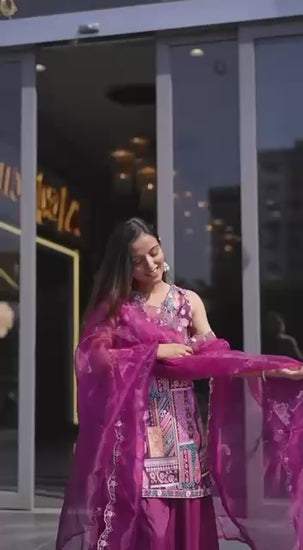 Completing the ensemble is a delicate Organza dupatta with elegant work, adding a soft, airy charm that enhances the overall look. Whether draped traditionally or styled creatively, the dupatta brings a refined festive touch to the outfit.