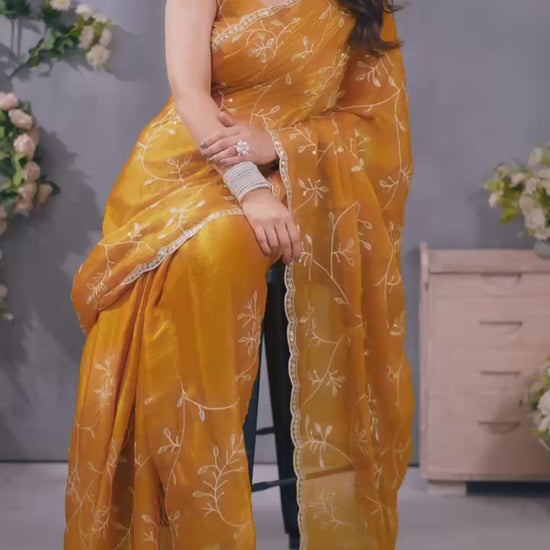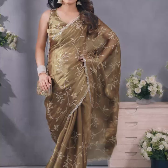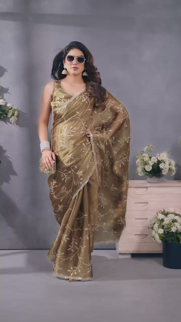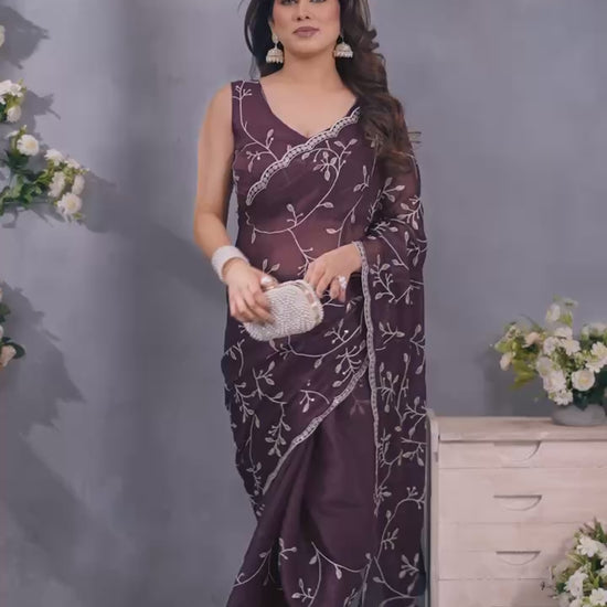 ✨ Premium Jimmy Chu Fabric Embroidered Saree ✨