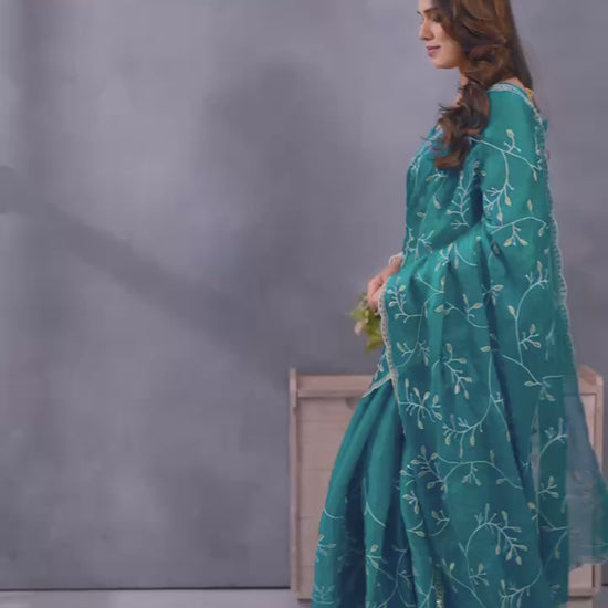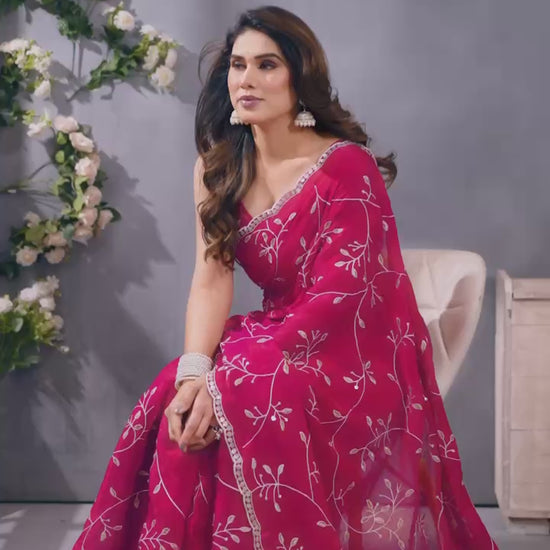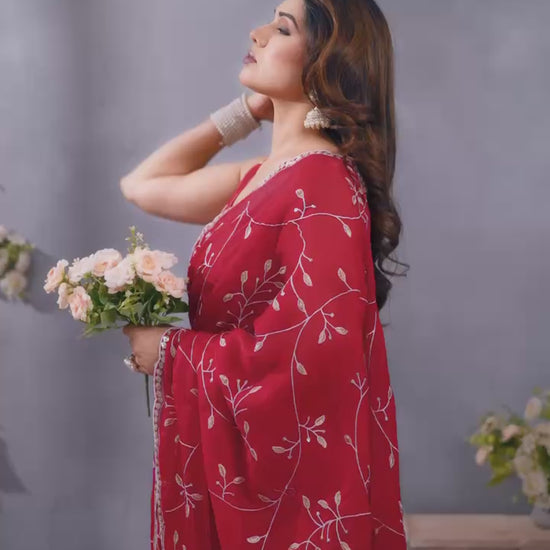 Pattern: Intricate Embroidery Work Saree with Matching Embroidery Blouse